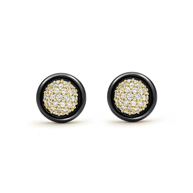 18K Gold and Black Ceramic Diamond Stud Earrings