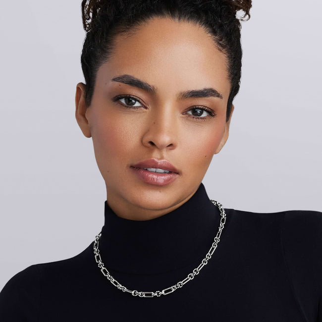 Add subtle elegance to any outfit with the Petite Sterling Silver Caviar Link Necklace. Crafted in luminous sterling silver, its delicate Caviar links catch the light beautifully, creating a refined, textured look. Ideal for layering or wearing alone for everyday sophistication.
