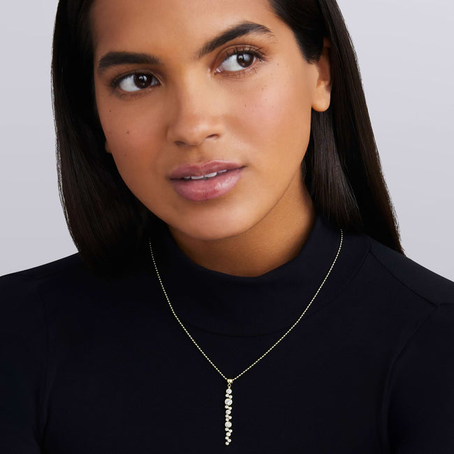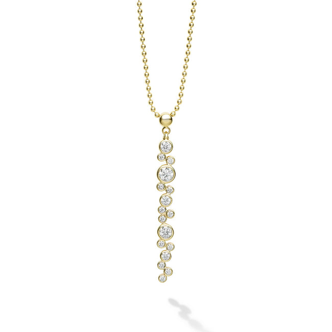 A row of seventeen sparkling diamonds set in 18K gold cascades to form a pendant and is finished on a chain, making a timeless and effortless necklace. LAGOS diamonds are the highest quality natural stones.
