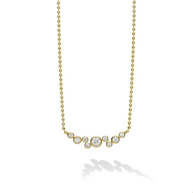 From delicate bubbles to bold clusters, discover radiant, natural diamonds set in 18K gold.