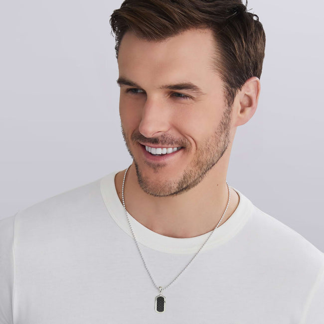 Matte black ceramic Caviar beading, set in sterling silver forms this tag amulet.
