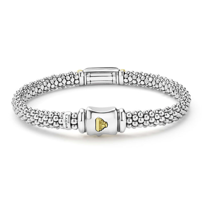 Diamonds surrounded by smooth black ceramic, 18K gold, and our classic sterling silver Caviar beading form this bracelet. LAGOS diamonds are the highest quality natural stones.