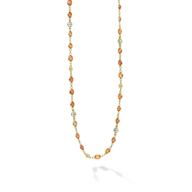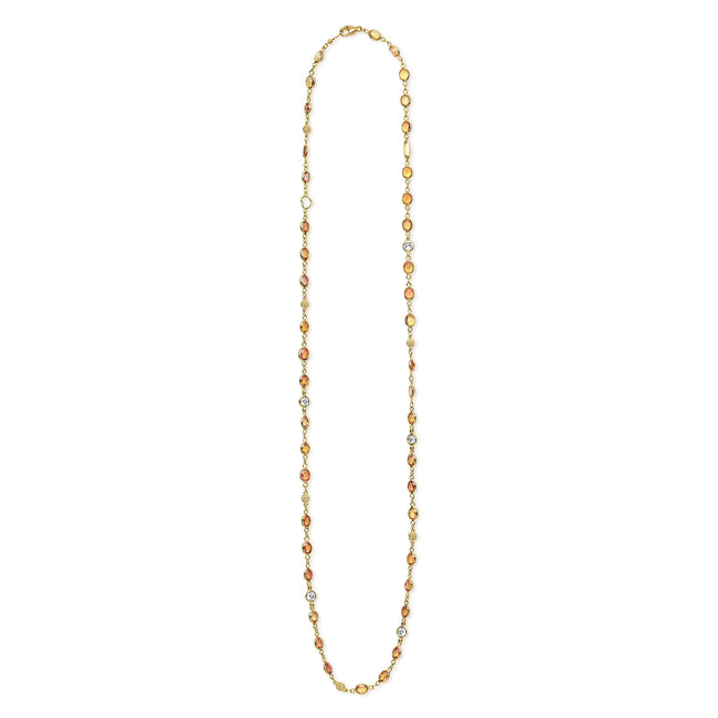 Caviar Gold 18K Gold Orange Sapphire and Diamond Station Necklace