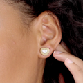 Diamond heart stud earrings highlighted with 18k gold classic Caviar beading. LAGOS diamonds are the highest quality natural stones.