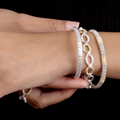 * If your wrist measurement falls on the cusp of two sizes, the smaller size will fit just right with not much wiggle room and the larger size will have some room and can be worn with another bracelet or a watch.