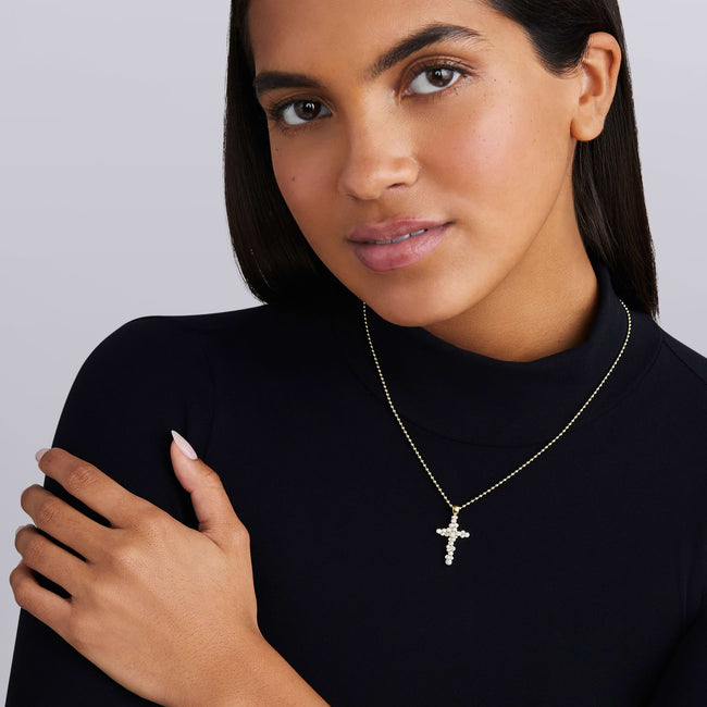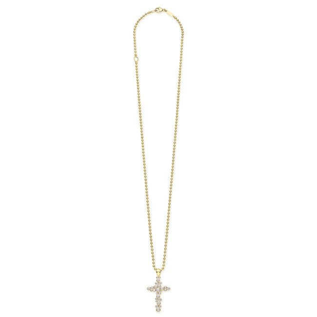 Radiant diamonds form a classic cross pendant, finished on a delicate 18K gold chain. A meaningful design with an elevated and timeless finish. LAGOS diamonds are the highest quality natural stones.