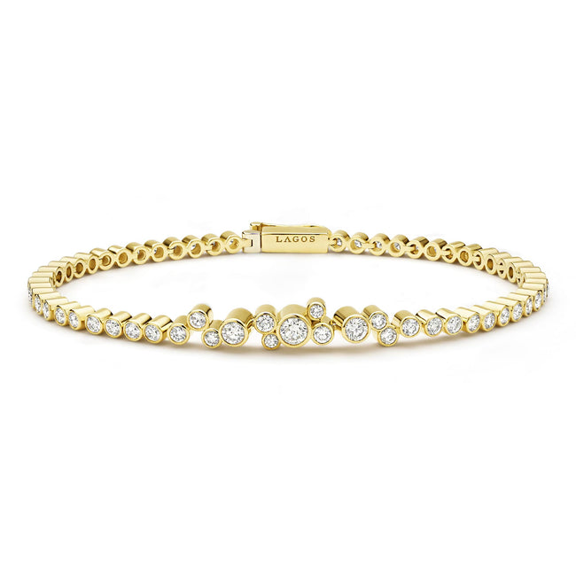 A line of dazzling diamonds set in radiant 18K gold creates this forever-classic tennis bracelet, an essential for every jewelry collection. LAGOS diamonds are the highest quality natural stones.