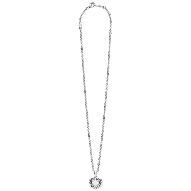 Caviar beading frames smooth sterling silver to form this heart pendant, finished on a fine chain for a charming, timeless style.