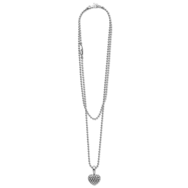 Signature Caviar beading forms this sterling silver heart pendant finished on a sterling silver ball chain necklace.